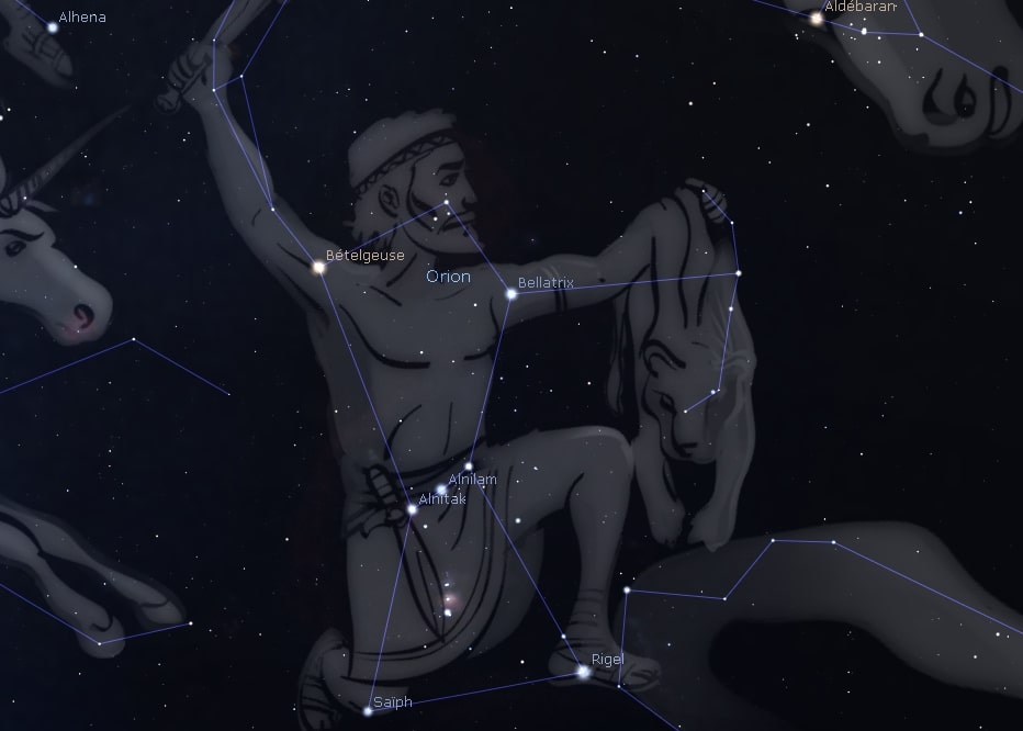 Orion est composée d’étoiles très vives comme Rigel, Bellatrix et Bételgeuse.